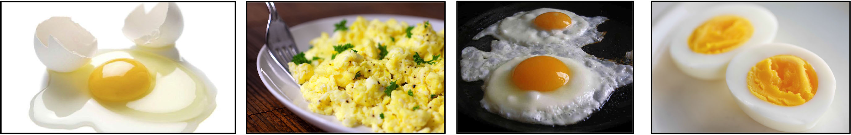 This α-synuclein aggregation is similar to the dynamic changes that happen to eggs when you mix them, beat them or heat/boil them; egg proteins are aggregated and denatured by these processes. When you open the egg, there are proteins holding together the egg yolk and egg white regions. By mixing, beating or heating eggs, one creates unusual interactions for egg proteins that lead to aggregation. Shown below are four images of eggs (fresh from the shell, beat to scrambled, fried and boiled, respectively). Much of the important role for eggs in cooking is due to these egg proteins aggregating from these structural perturbations (for a cool review on egg chemistry see: https://www.exploratorium.edu/cooking/eggs/eggscience.html ). While we have a good understanding of the food chemistry of eggs and their proteins, we are now making tremendous gains of knowledge concerning the disease-causing role of α-synuclein aggregation (Lewy body) in Parkinson’s (also see: http://www.ncbi.nlm.nih.gov/pmc/articles/PMC3281589/ ).