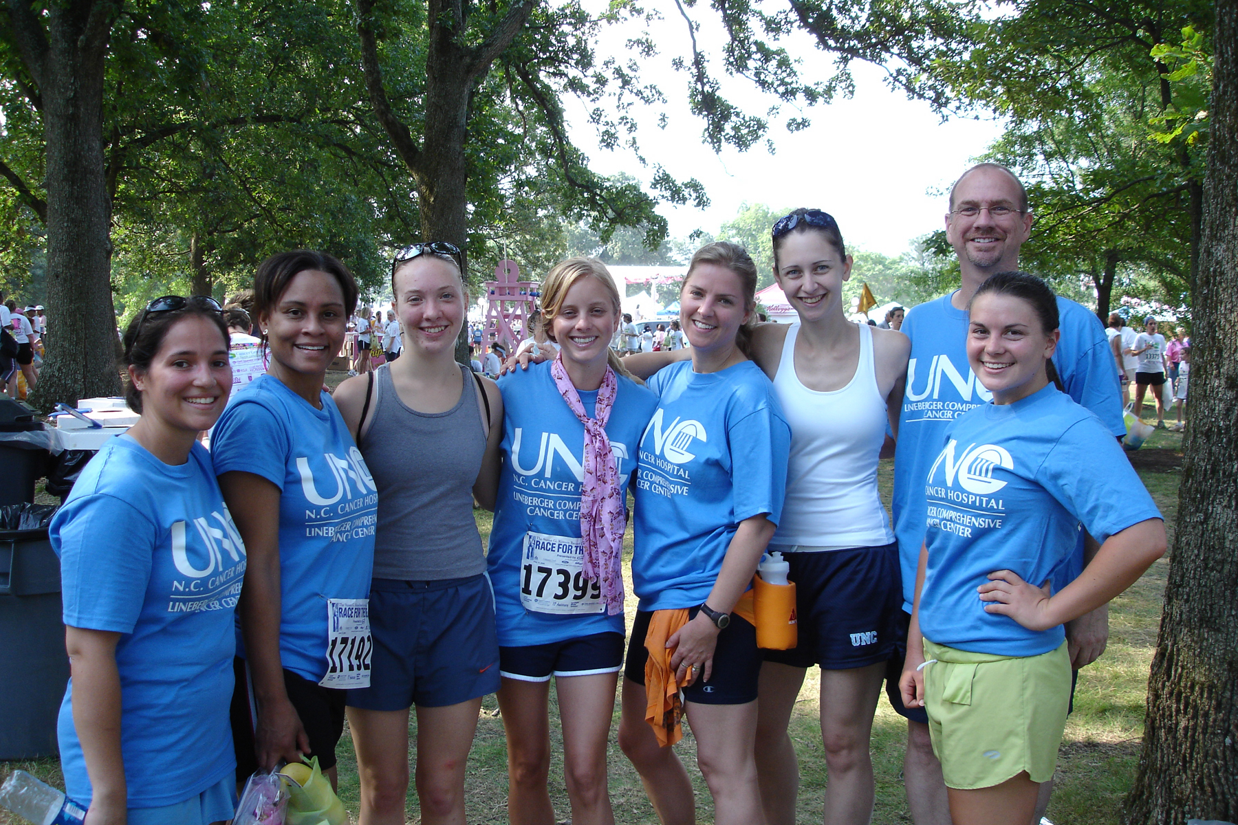Fund Raising, Organizations and Walks: Having a walk is neither novel nor new, but it enables the National Parkinson Foundation to fund research and community projects, and it unites us all briefly to focus on Parkinson’s and togetherness. Over the years, my research laboratory has been boosted and supported by various non-Federal organizations, namely, the American Heart Association (AHA) and the Susan G. Komen for the Cure (Komen). And both organizations for many years have had their own fund-raising walks/runs. Thus, as a tribute and thanks to the generous funding of research projects and fellows by the AHA and Komen, for many prior years, my laboratory group would participate and help raise funds for the annual Triangle Heart Walk and the Komen Triangle Race for the Cure®, respectively. Pictures below are from the Komen event a few years ago.