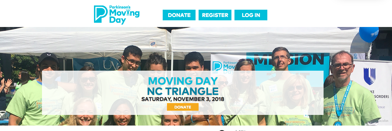 The 2018 Moving Day Walk: Similar to the AHA and Komen events described above, my participation in Moving Day is both personal and professional. I have Parkinson’s and I am trying hard to support numerous Parkinson’s organization, continue to stay focused on Parkinson’s advances, and remain committed to helping others with Parkinson’s through outreach/education/blog activities. Thus, Moving Day was both important and very personal to me. 2018 was the 4th year the team named Carolina Parkinson’s has come together for Moving Day, and we had a great turn out.