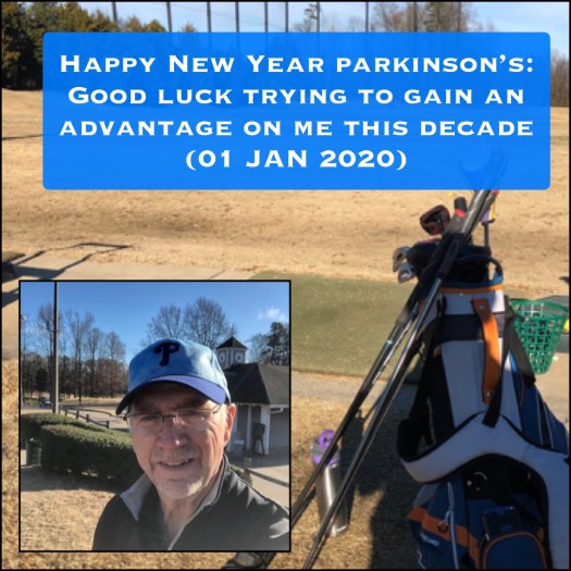 Important to Start the Year by Showing Parkinson’s You are Still in Charge of Your Life: Today was a beautiful winter day in North Carolina, brilliantly sun with a pale blue sky, in the mid-’50s (degrees F). I was able to get out to the golf driving range and practice my golf game by hitting 100-golf balls. It was essential to start the new year out on a positive slant, focused against Parkinson’s; always aware of the unwanted companion.