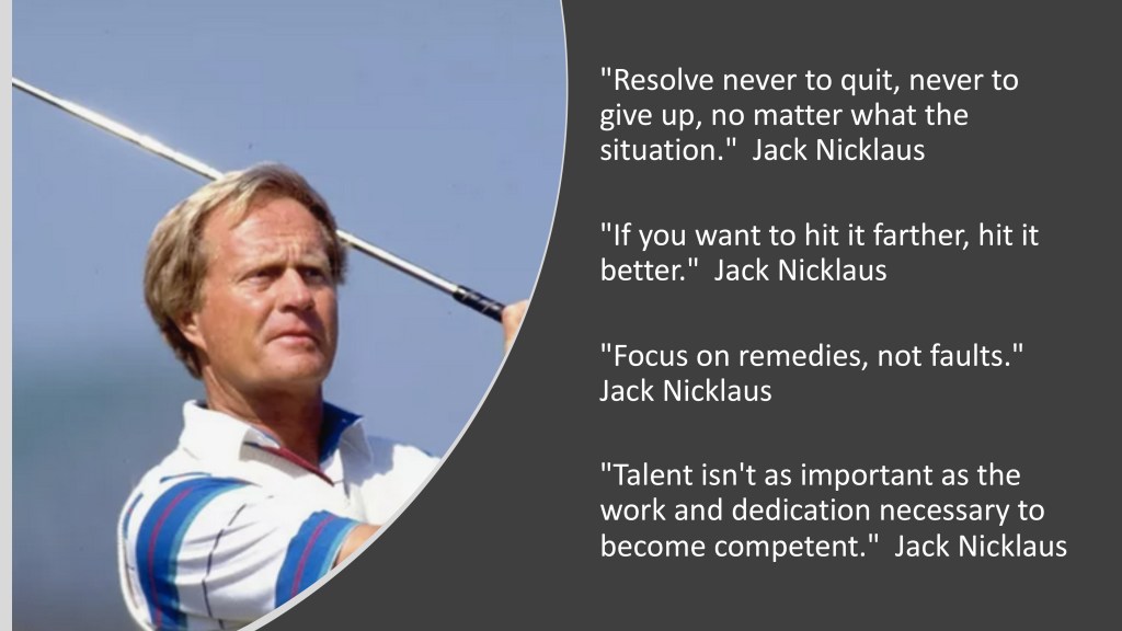 Arnold Palmer and Jack Nicklaus: My two favorite golfers were Arnold Palmer and Jack Nicklaus. What I found so amazing was their fierce competitive times, which turned into an incredibly loyal and deep friendship. Below are a few of my favorite quotes from them.