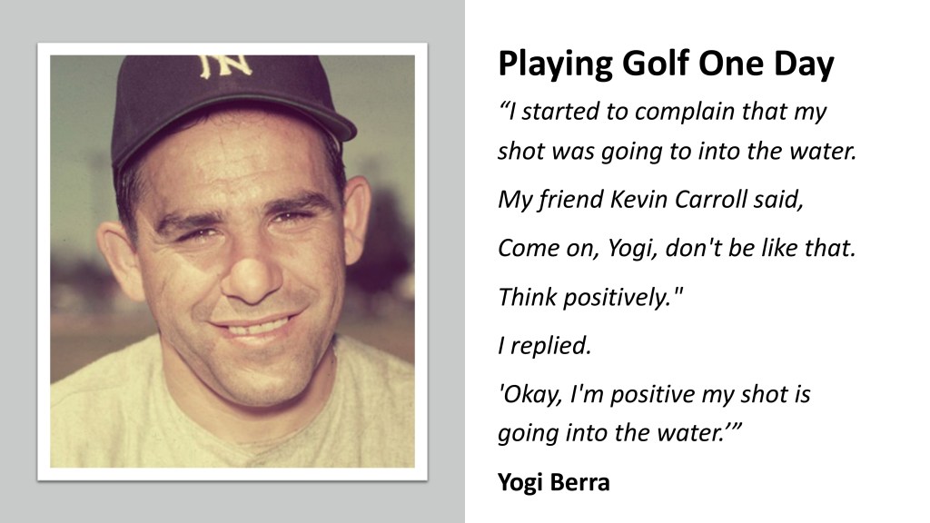 Playing Golf One Day by Yogi Berra: The one-and-only baseball legend Yogi Berra telling a golf story (this made me smile).