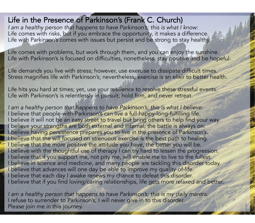 I am a healthy person that happens to have Parkinson’s; this is my daily mantra: