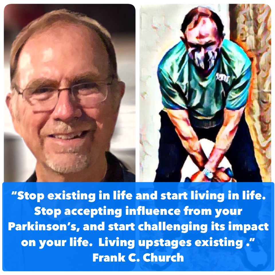 Live Each Day: Every day, you accomplish something, and it makes you feel alive; you are alive. Every day you try to do something to deal with your Parkinson’s, that also matters. Recently, I posted the following quote and remarked that it was my 2021 mantra: “Stop existing in life and start living in life. Stop accepting influence from your Parkinson’s, and start challenging its impact on your life. Living upstages existing.” I also included the following pictures with my quote (see below). Interestingly, several people have asked me to expand on what was the message I was trying to convey to everyone?