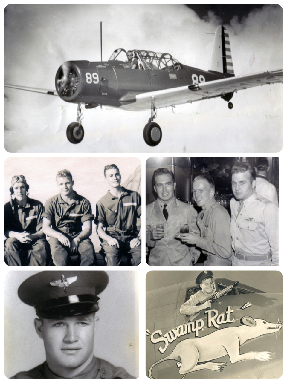 As World War II (from 1939-1945) was continuing and now on two world fronts, by 1941 and finishing LSU with a degree in Geology, my father had decided to enlist in the Army Air Corps. Thus, in January of 1942, following marriage, he left for flight training school (the Figure below shows some composite pictures of my father, Frank C. Church, Sr. and his soon-to-be-wife, Margaret Dupuis, and he is pictured as an officer in the Army Air Corps.