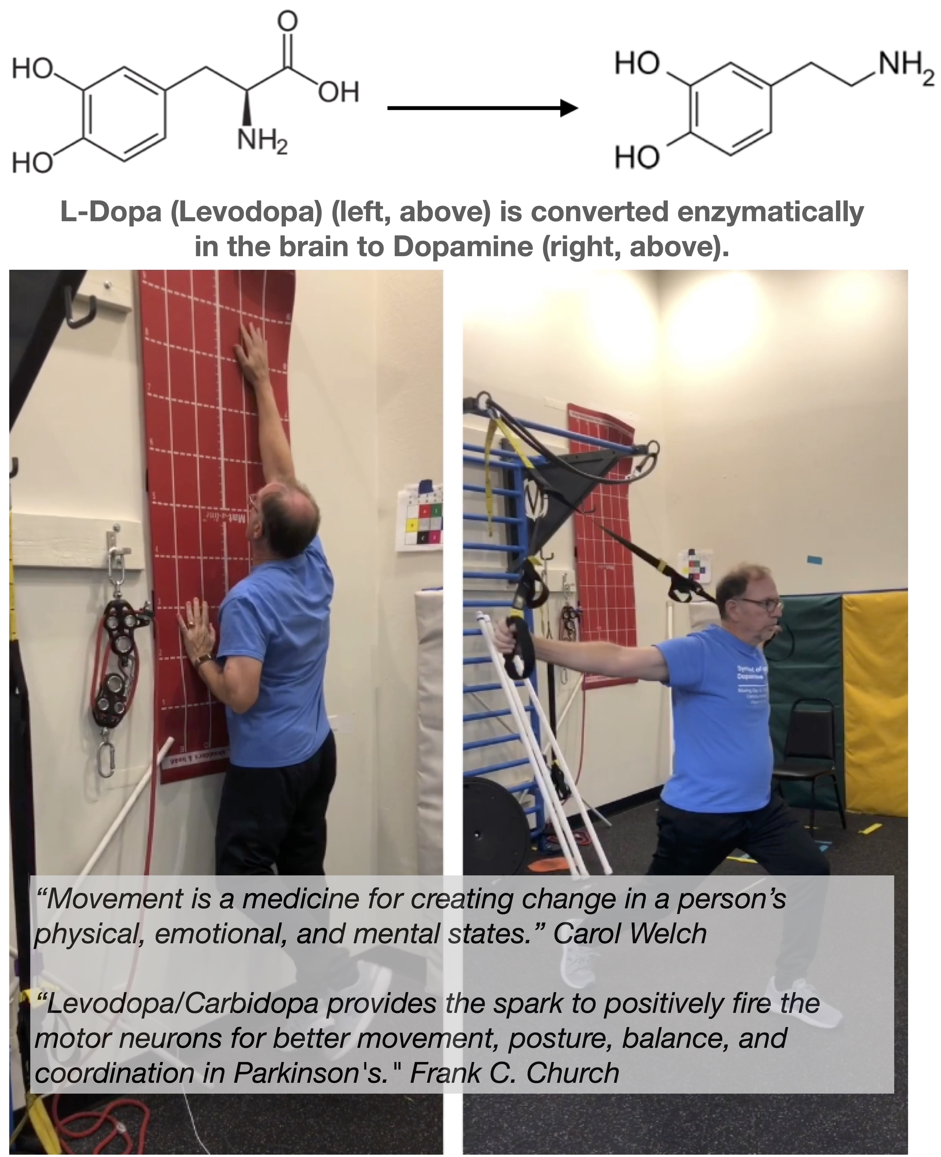 - Levodopa/Carbidopa provides the spark to positively fire the motor neurons for better movement, posture, balance, and coordination in Parkinson’s.