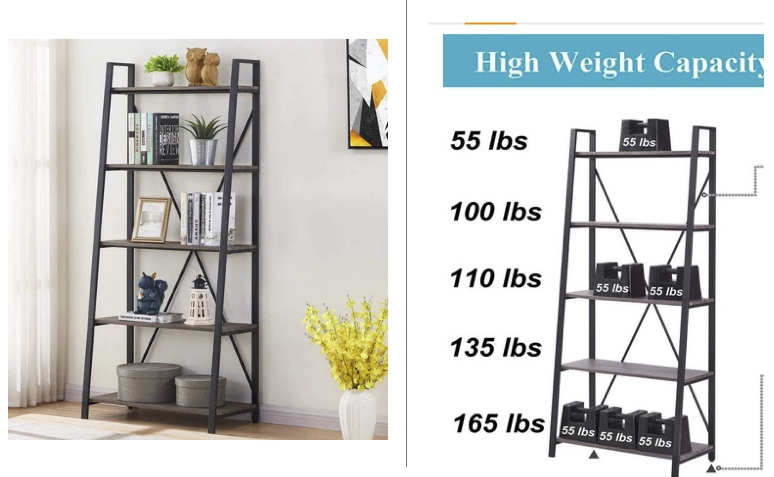 Assembling the Bookcase: In down-sizing, I brought with me ~15 textbooks (removed from 2 huge bookcases at work that had probably ~100 books). And sprinkled with other essential books [books on Parkinson’s, golf, and sports in general (I am keeping my copies of the Lord of the Rings and The Hobbit books by J.R.R. Tolkien in a different place)], they need to be put somewhere when unpacked. If anything, I may not be neat, but I need things in order. Order could be partially restored by finding a place for these books besides being stacked on the floor. But it had to be the kind of bookcase capable of holding some large medical textbooks (the type that is >1200 pages in length and weighs at least 4-5 lbs). And I found the bookcase on Amazon.com, “Bon Augure Industrial Ladder Shelf, Rustic 5 Tier Leaning Bookshelf, Wood Metal Ladder Bookcase.” It seemed functional in form and not beautiful, but it’s a bookcase.