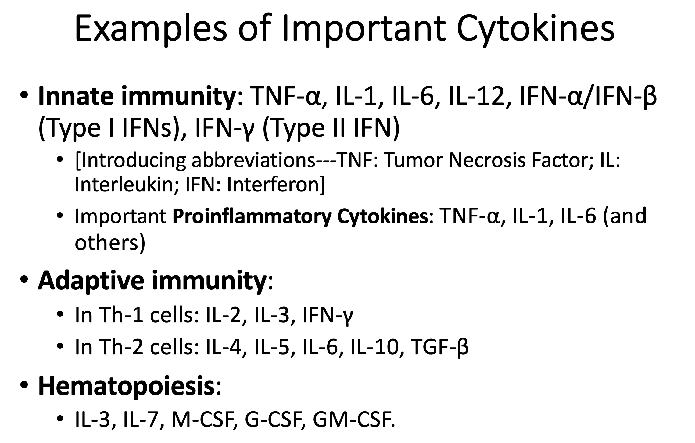 •Cytokines are low molecular weight, soluble proteins produced in response to an antigen and function as chemical messengers for regulating the innate and adaptive immune systems.