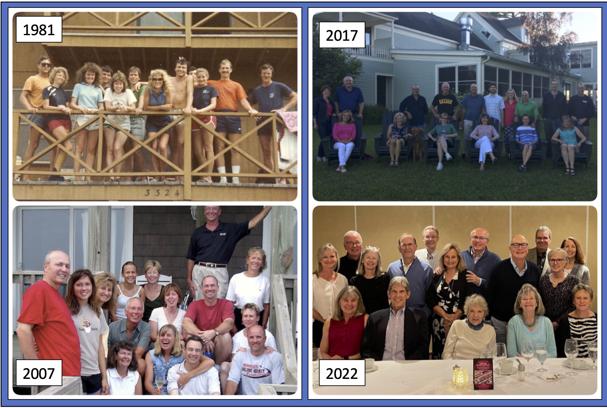 I still communicate with and occasionally see my high school best friend. In addition, I have been fortunate to have friends from graduate school. We have maintained our friendships for many decades, and routinely, we have reunion trips/vacations together (to places where others live, e.g., California, Vermont, Colorado, and North Carolina). Other friends regularly played golf together on Sunday mornings for ~14 years (until my recent move to South Carolina). However, they continue playing golf each weekend, so good for them. And over almost 40 years of working at the University, I developed several good friends.