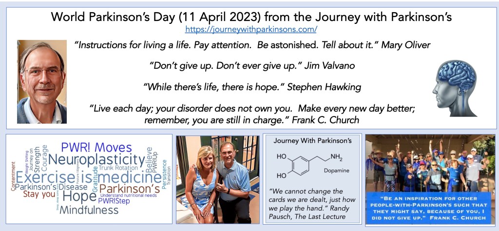Finally, to all of the readers of this blog, I owe a huge thank you. I have met several of you over the years and genuinely admire your battle with Parkinson’s. I look forward to hearing from you and continue suggesting stories and areas you want to read about. Keep your head up, and stay positive and hopeful. We have much to live for amid Parkinson’s.