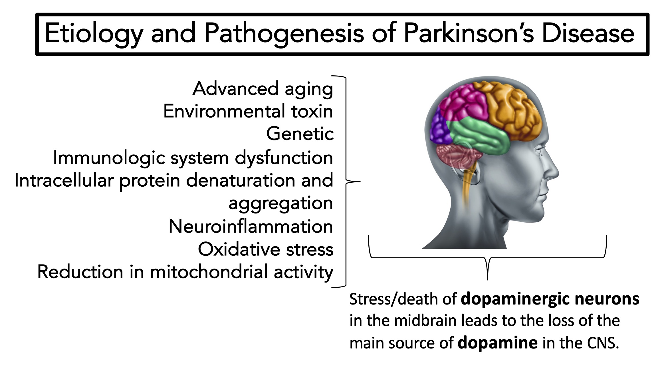 Introduction: When thinking about therapy, one must consider the numerous pathways of initiation of Parkinson’s (shown in the schematic below). This suggests that for treatment to be effective, one should consider using or designing a multi-functional approach to deal with the motor- and non-motor defects and the numerous putative causes (etiology) of the disorder. For example, should one consider addressing neuroinflammation? Is some crucial nutrient deficient? Should one try to reduce the detrimental oxidative stress in the mid-brain? Does the immune system need to be re-focused? Each question could be answered yes. However, trying to orchestrate or design a treatment strategy for Parkinson’s may be far-fetched and impossible. This quote from John Wooden has always positively influenced me, “Do not let what you cannot do interfere with what you can do.” Therefore, you can try several approaches to slow the disorder’s progression, make the brain healthier while battling Parkinson’s, and stay hopeful and focused.