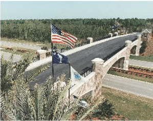 The Bridge: My community spans north and south of Highway 278, the road to Hilton Head Island. A bridge was needed to unite the two areas of the community. So, a two-lane bridge was built that allowed the passage of cars, golf carts, bikes, and pedestrians. Here are two views of the bridge.