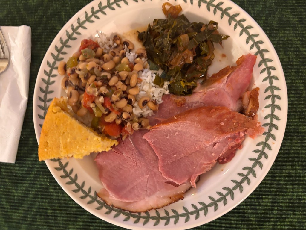 The New Year Started Right with a Southern Good Luck Meal: We had a traditional Southern dinner for New Year to give you good luck for the year. It consisted of ham (from Snake River Farms in Idaho, oh my, a perfect ham!), in true Alabama tradition, collard greens, black-eyed peas served as Hoppin’ John, and cornbread cooked in a cast iron skillet. To get the details and the meaning of everything for the meal, go to this blog post: “Journey with Parkinson’s: A Southern Good Luck Meal in the New Year” (click here).