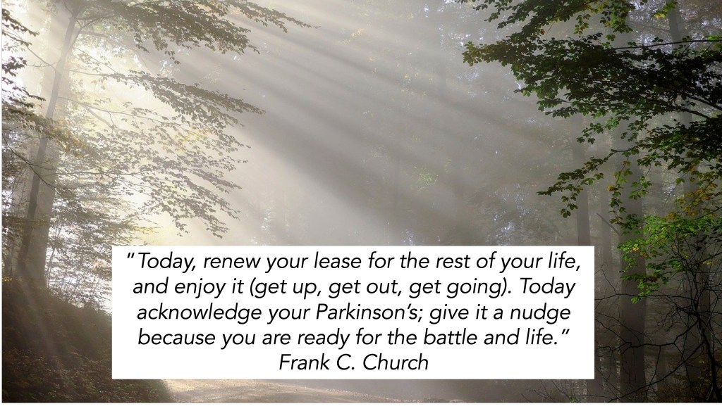 Introduction: A recurring theme of this blog is using various quotes. In reviewing the blog site a while ago, Dan Brown said, “Frank has a bucket-load of quotes, from which he usually plucks a couple of appropriate ones to introduce each post and another for the conclusion. The type of quotes he chooses generally gives away the nature of the post; insightful and meaningful quotes may indicate a thoughtful piece of writing awaits, while ones from medical professionals usually commence a post on science, research, treatment, and other such topics.” And about every sec6nd year or so, I devote an entire blog post to quotes. I found six folders on the blog website labeled ‘quotes’ from recently until back in 2015 when the blog started. And I selected ~160 quotes divided up into the following 10 categories. It is very likely that I have used many of these quotes before, but they are still valuable for the purpose of helping us live through the diagnosis of Parkinson’s.