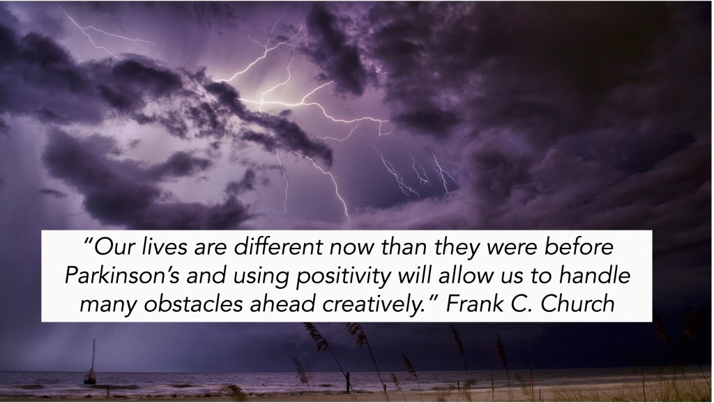 2. Positivity and Gratitude. Joyce Meyer stated, “You can not have a positive life and a negative mind.” it seems to me that a focus on what could happen being positive may have a bigger impact on our health, then assuming it all will be negative, Even in the midst of Parkinson’s, we should feel grateful for many things in our lives. Willie Nelson said it best, “When I started counting my blessings, my whole life turned around.”