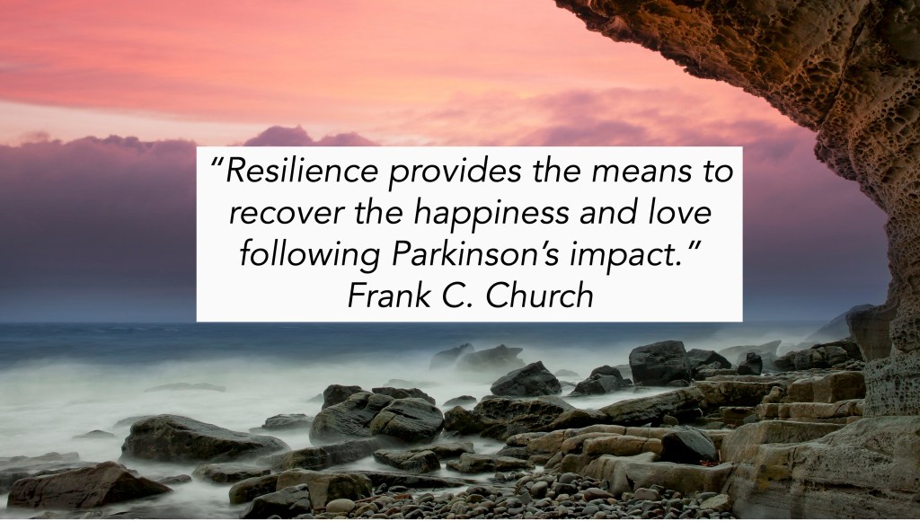 4. Resilience and Aging. We define resilience as our ability to withstand or recover from difficulties. As said by Jon Avery, “When the road you’re on begins to crumble, forge ahead – better it crumble behind you than ahead of you.” And as withstand the regular attacks from Parkinson’s, we are also aging. Remember the words of Jules Renard, “It’s not how old you are, it’s how you are old.”