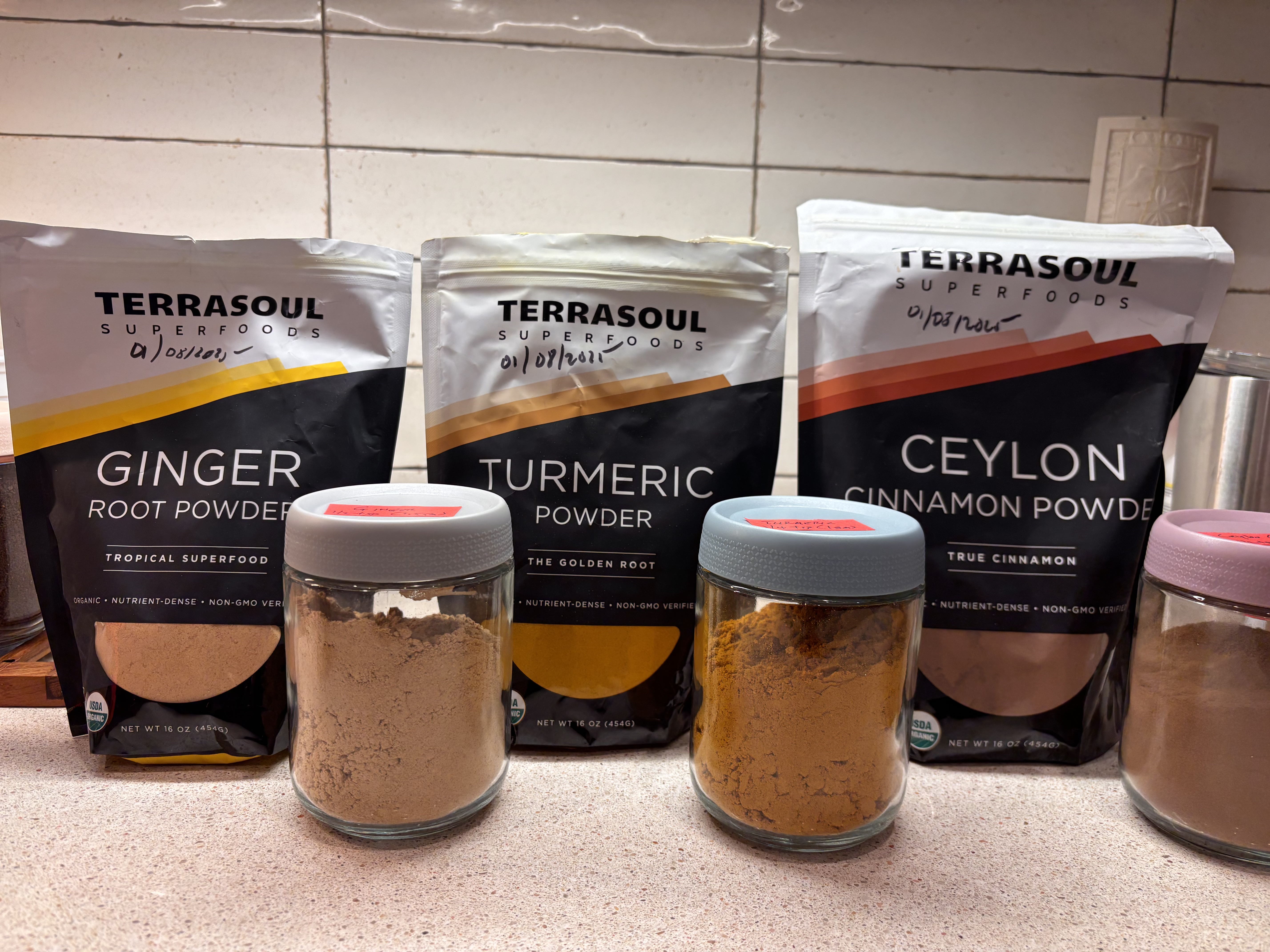 1/2 tablespoon Georgia Gold turmeric (or 1./2 teaspoon Bio-Grape Bio-Curcumin )